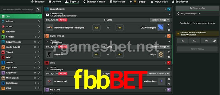 O fbbbet oferece uma grande seleção de opções de apostas em e-sports com probabilidades competitivas